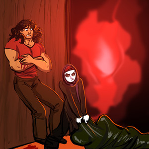 For example, I use a lot of biologically female motifs in the comic. The underground cave interiors are all red, for both the horror setting and the vague look of a womb.